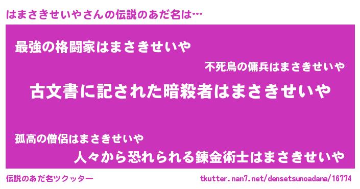 | 意味不明あだ名 | 『永久保存はまさきせいや』 |