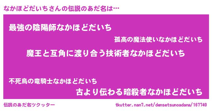| 女子向けラノベタイトル風あだ名 | 『なかほどだいち恋絵巻』 |