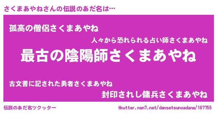| 恥ずかしいあだ名 | 『サクマアヤネデラックス』『さくっちょ』 |