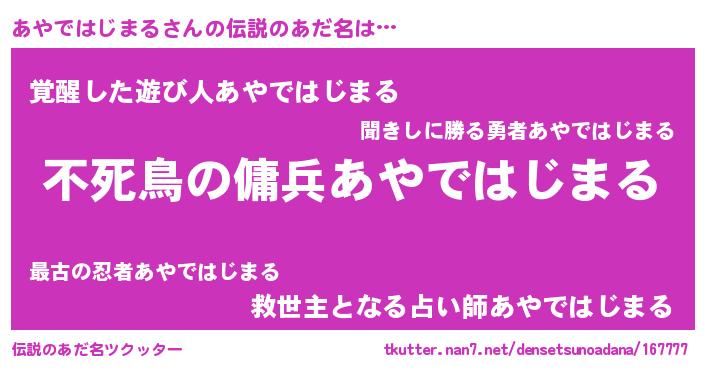 | ヒーロー風カッコイイあだ名 | 『スーパーアヤデハジマル』 |