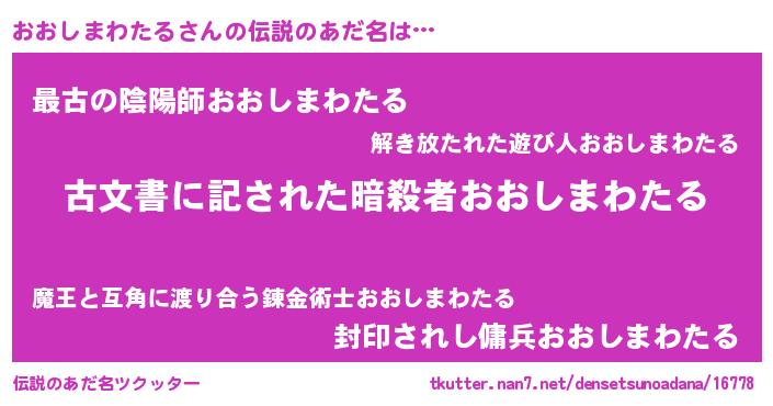| ヒーロー風カッコイイあだ名 | 『ネオオオシマワタル』『仮面オオダー』 |