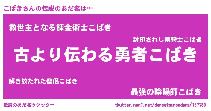 | 意味不明あだ名 | 『永久保存こばき』『自称こばき』 |