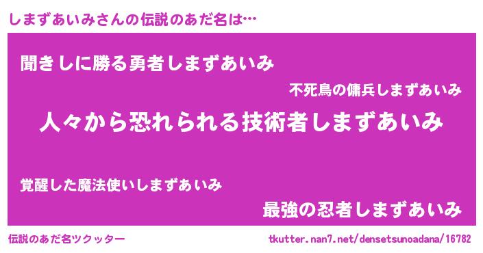| ヘコむあだ名 | 『しまずあいみ(笑)』『なまこ酢』 |
