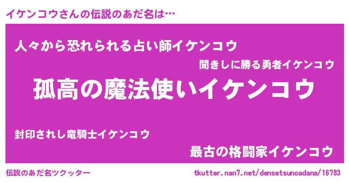 | 女子向けラノベタイトル風あだ名 | 『イケンコウが死なない童話 林檎のイケンコウの診療簿』 |
