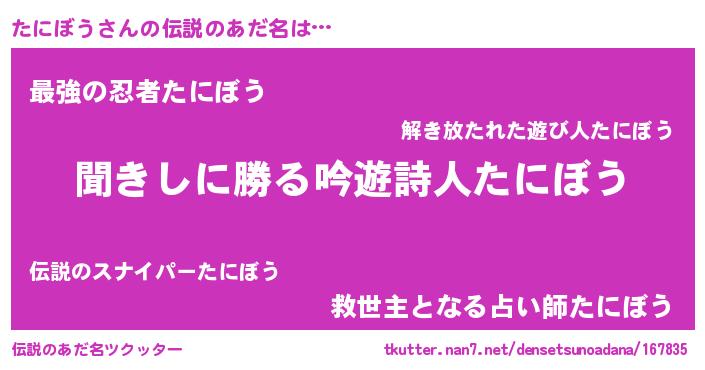 | ファンタジー風あだ名 | 『タニディッシュ』『ヴァルタニーナ』 |