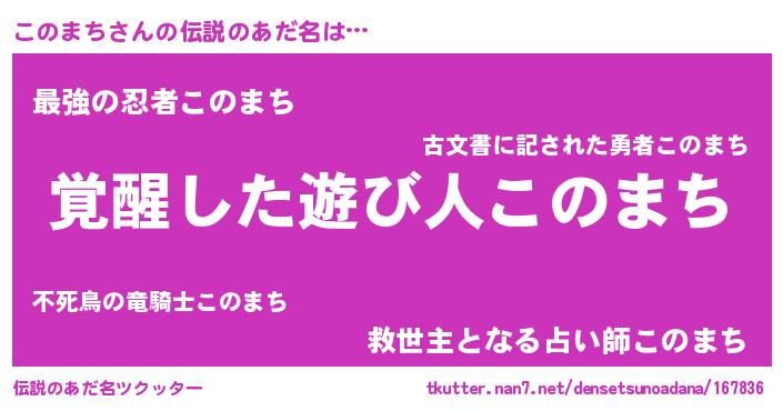 | ヒーロー風カッコイイあだ名 | 『天弓騎士コノ』『超時空戦士コノマチ』 |