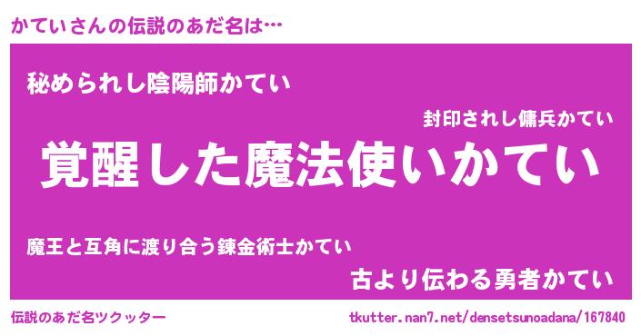 | 意味不明あだ名 | 『とにかく怪しいかてい』『自称かてい』 |