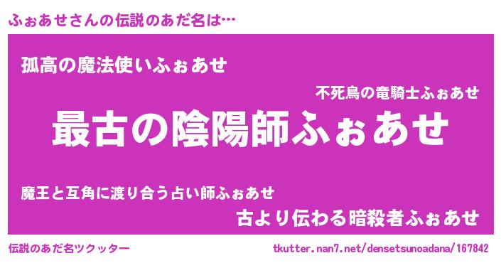 | ヒーロー風カッコイイあだ名 | 『ウルトラふぉあせマン』『暗黒騎士フォ』 |