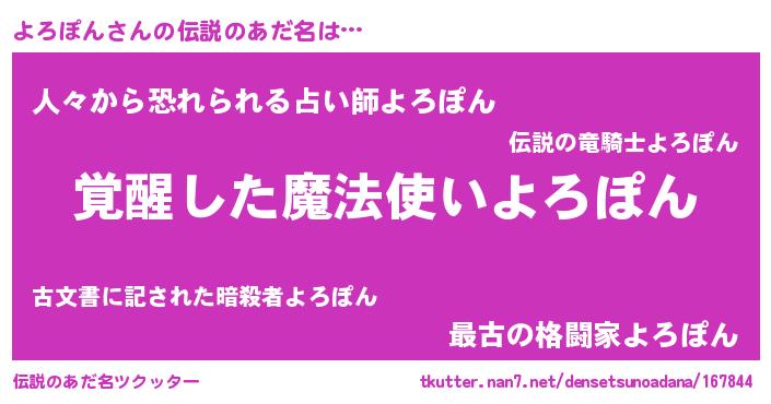 | 意味不明あだ名 | 『住所不定無職よろぽん(11歳)』 |