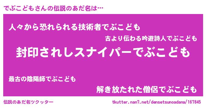 | 意味不明あだ名 | 『ペロリンでぶこども』『自称でぶこども』 |