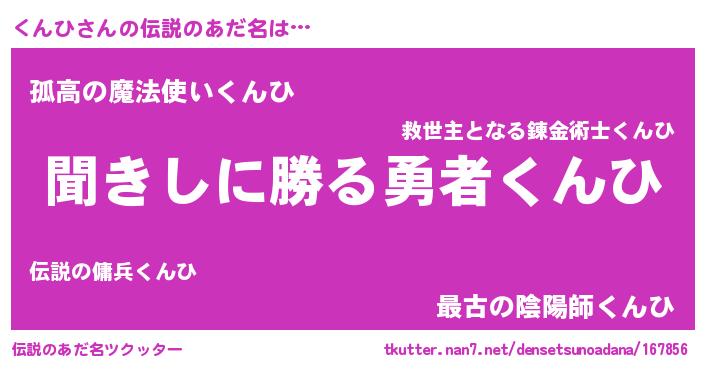 | ヘコむあだ名 | 『くんひ(苦笑)』『くんを』『豆乳』 |