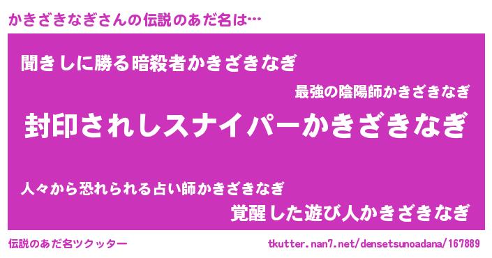 | 胡散臭い通販商品みたいなあだ名 | 『億万長者になれる霊験あらたかなお札…その名も「かきざきなぎ」』 |