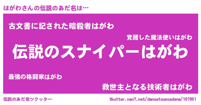 | 胡散臭い通販商品みたいなあだ名 | 『必ず成功する霊験あらたかなお札…その名も「はがわ」』 |
