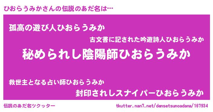 | ファンタジー風あだ名 | 『エターナルヒオラウミカー』 |
