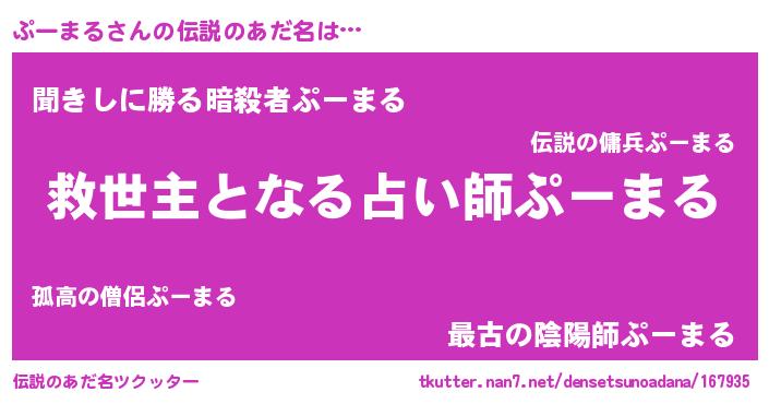 | ヒーロー風カッコイイあだ名 | 『天空の使者ぷーまる』『ネオプーマル』 |
