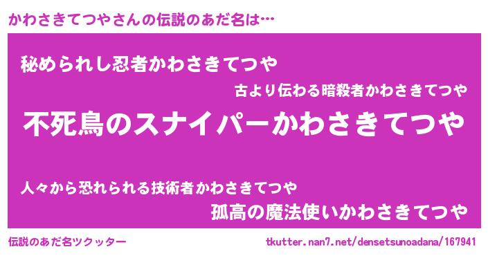 | 意味不明あだ名 | 『自称かわさきてつや』 |