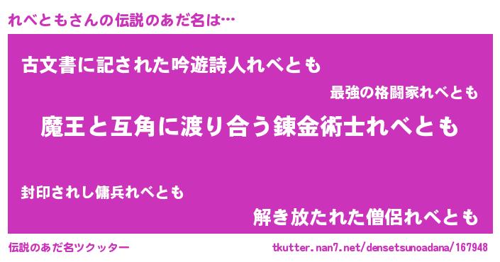 | ヘコむあだ名 | 『れべとも(苦笑)』『れべを』『豆乳』 |