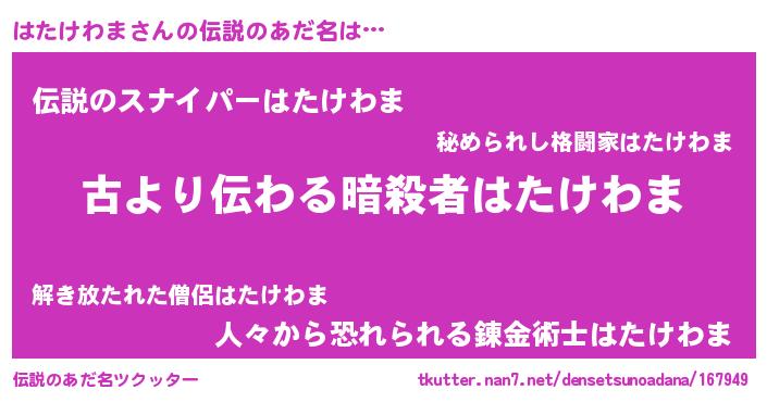 | 意味不明あだ名 | 『住所不定無職はたけわま(65歳)』 |