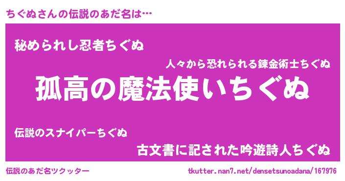 | 男性向けラノベタイトル風あだ名 | 『チグヌスレイヤー』 |