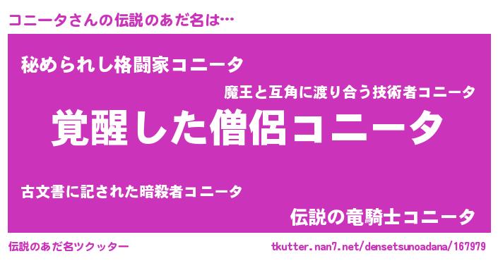 | 意味不明あだ名 | 『とにかく怪しいコニータ』 |