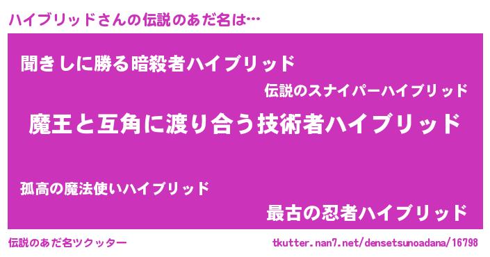 | 男性向けラノベタイトル風あだ名 | 『ノーゲーム・ノーハイブリッド』 |