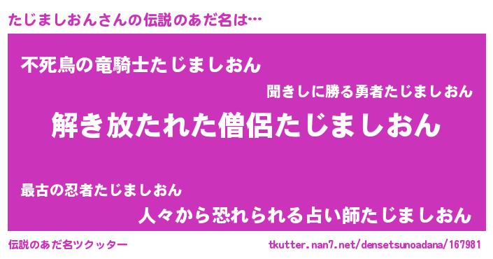 | 意味不明あだ名 | 『とにかく怪しいたじましおん』 |
