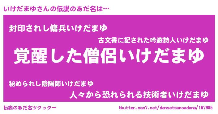 | 意味不明あだ名 | 『とにかく怪しいいけだまゆ』 |