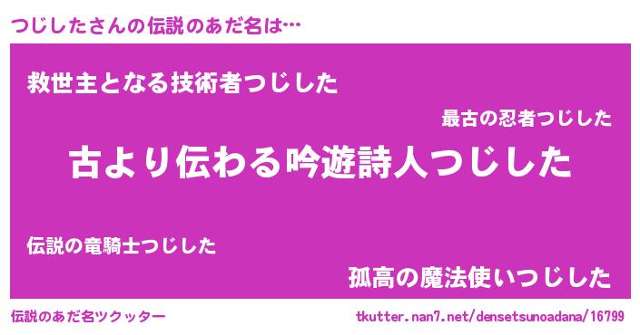 | 男性向けラノベタイトル風あだ名 | 『つじしたという概念が存在しない退屈な世界 』 |