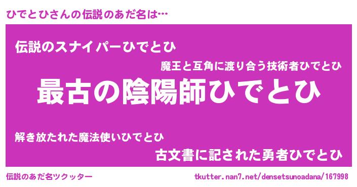 | ファンタジー風あだ名 | 『エターナルヒデトヒー』『ゼヒデトゥ』 |
