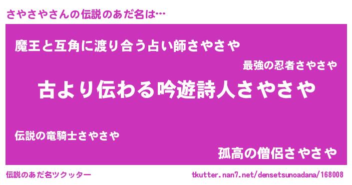 | ヘコむあだ名 | 『さやさや(小並感)』『さやっ子』 |