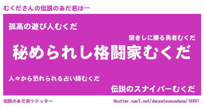 | 男性向けラノベタイトル風あだ名 | 『ムクダスレイヤー』『緋弾のムクダ』 |