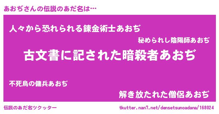 | ヒーロー風カッコイイあだ名 | 『ネオアオヂ』『友情の使者あおぢ』 |