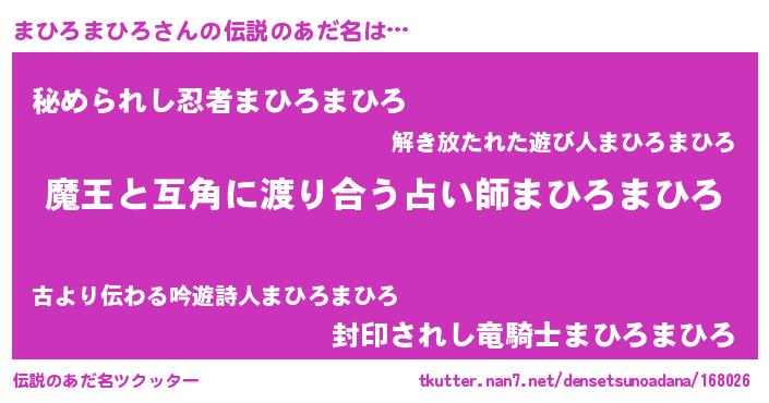 | 男性向けラノベタイトル風あだ名 | 『ノーゲーム・ノーマヒロマヒロ』 |