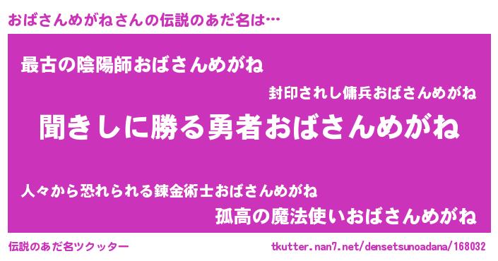 | ヒーロー風カッコイイあだ名 | 『仮面オバダー』『ネオオバサンメガネ』 |