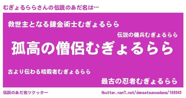 | ヒーロー風カッコイイあだ名 | 『暗黒騎士ムギ』『最強戦士ムギョルララ』 |