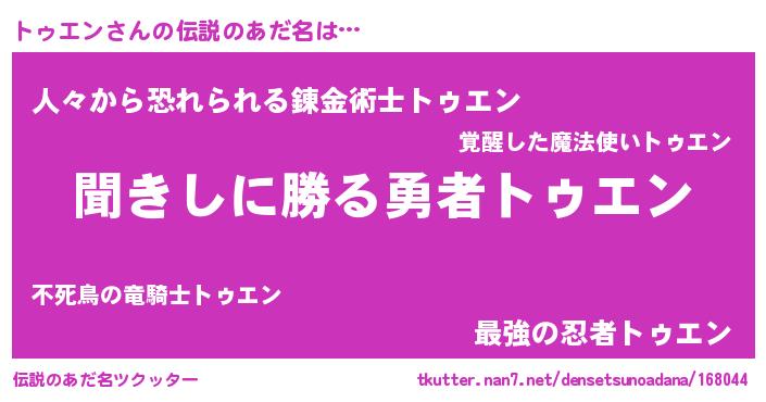 | 意味不明あだ名 | 『永久保存トゥエン』『自称トゥエン』 |