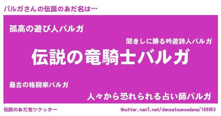 | 胡散臭い通販商品みたいなあだ名 | 『必ず成功するブレスレット…その名も「バルガ」』 |