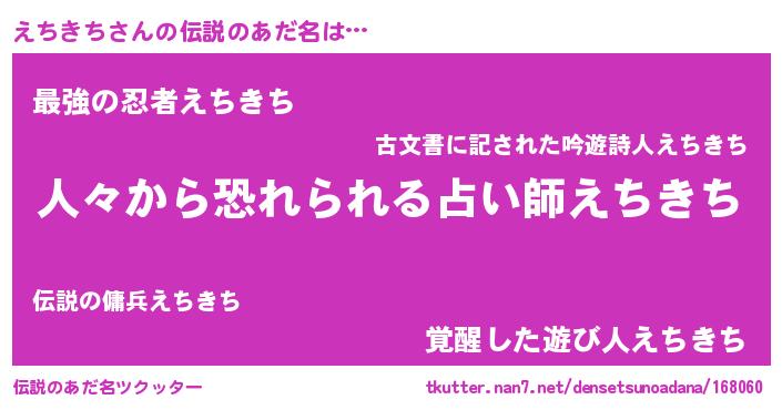 | ヒーロー風カッコイイあだ名 | 『ウルトラ戦士エチキチ』『暗黒騎士エチ』 |