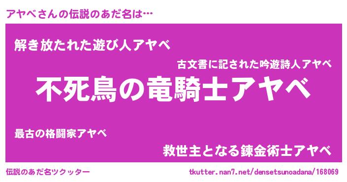| ファンタジー風あだ名 | 『アヤフェル』『ファントムアヤス』 |