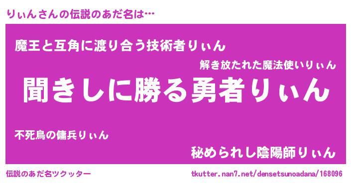 | ヒーロー風カッコイイあだ名 | 『仮面リィダー』『ネオリィン』 |