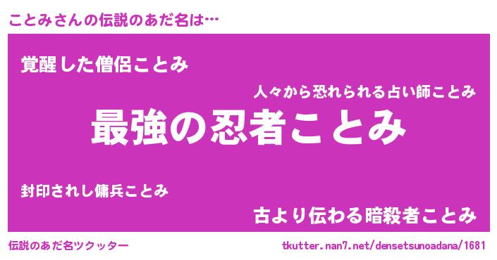 | ヒーロー風カッコイイあだ名 | 『ウルトラことみマン』『炎刃騎士コト』 |