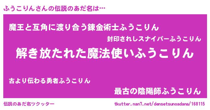 | ヒーロー風カッコイイあだ名 | 『サイバー戦士フウコリン』 |