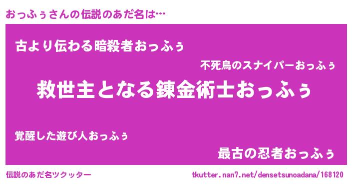 | ヒーロー風カッコイイあだ名 | 『慈愛の使者おっふぅ』『ネオオッフゥ』 |