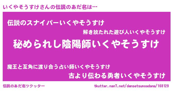 | 意味不明あだ名 | 『いくやそうすけフォーエバー』 |