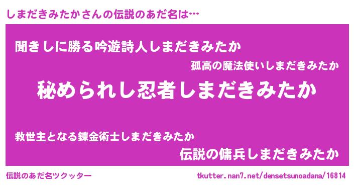 | 意味不明あだ名 | 『自称しまだきみたか』 |