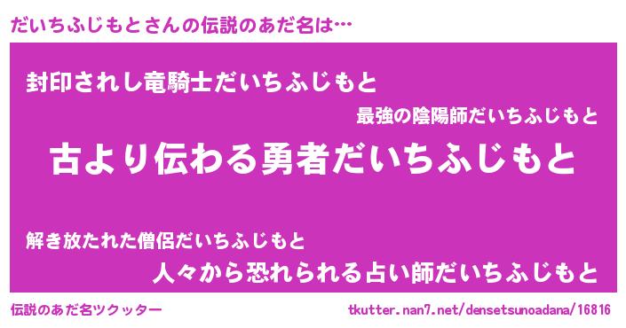 | 男性向けラノベタイトル風あだ名 | 『だいちふじもとという概念が存在しない退屈な世界 』 |