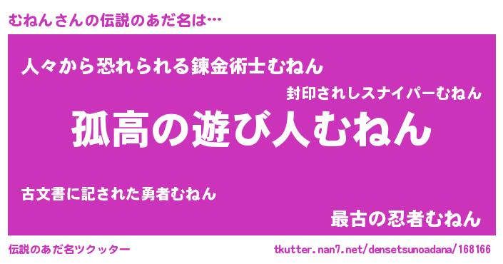 | ヒーロー風カッコイイあだ名 | 『暗黒騎士ムネ』『正義の使者むねん』 |