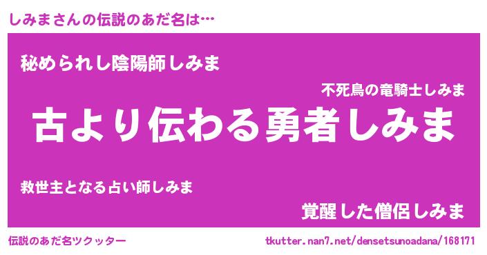 | ヒーロー風カッコイイあだ名 | 『ネオシミマ』『ウルトラしみまマン』 |