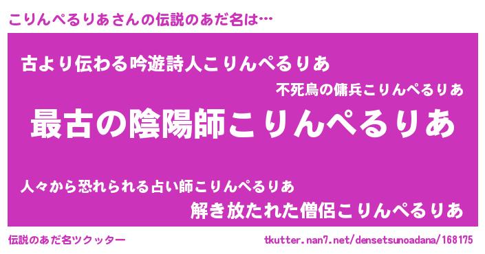 | 胡散臭い通販商品みたいなあだ名 | 『世界中を虜にした世界で10本だけ現存している希少なブランデー…その名も「こりんぺるりあ」』 |