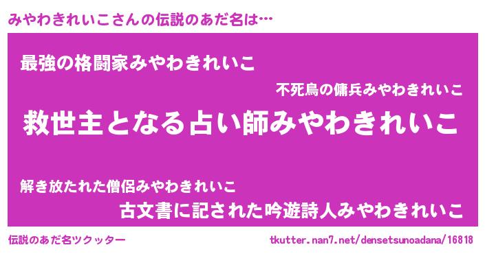 | 欧米人風あだ名 | 『ダレノガレみやわきれいこ』 |